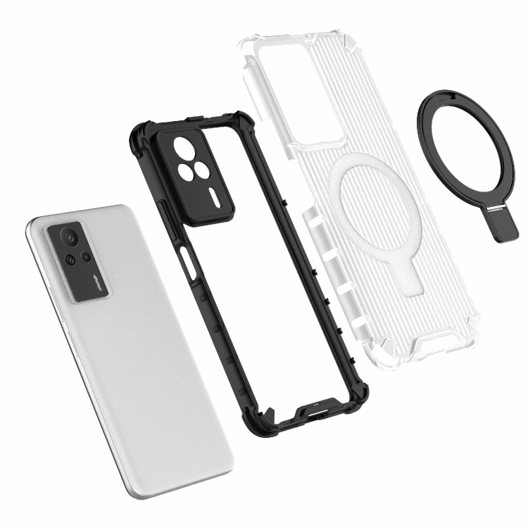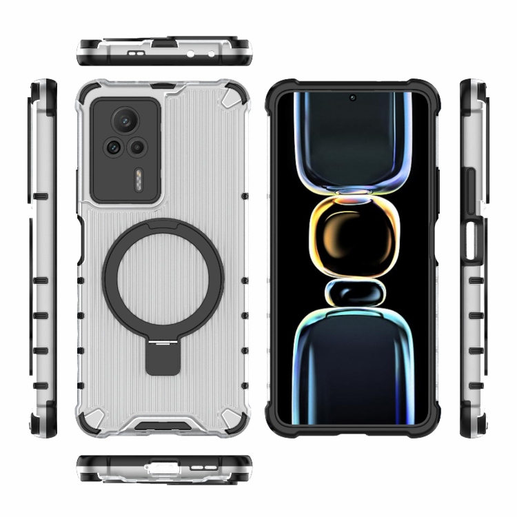 Funda para Teléfono a Prueba de Golpes con Soporte de Rejilla para Redmi K60E 5G (Transparente)