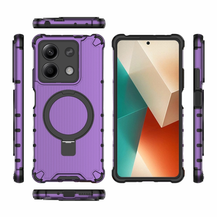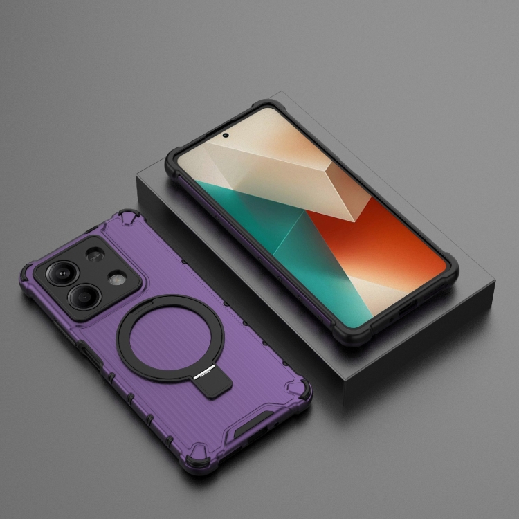 Funda para Teléfono a Prueba de Golpes con Soporte de Rejilla para Redmi Note 13 5G (Morado)