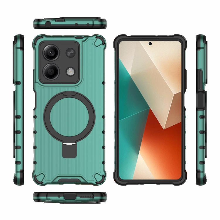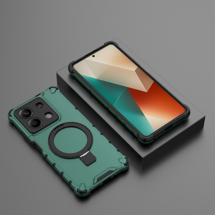 Funda para Teléfono a Prueba de Golpes con Soporte de Rejilla para Redmi Note 13 5G (Verde)