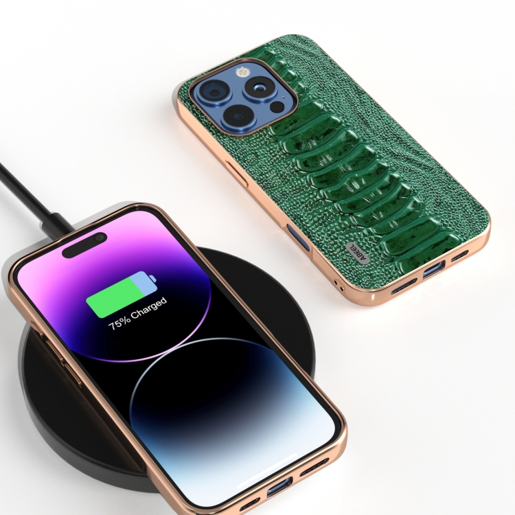 Funda para Teléfono Abeel Serie Weilai Cuero Genuino Marco Galvanizado iPhone 16 Pro (Verde)
