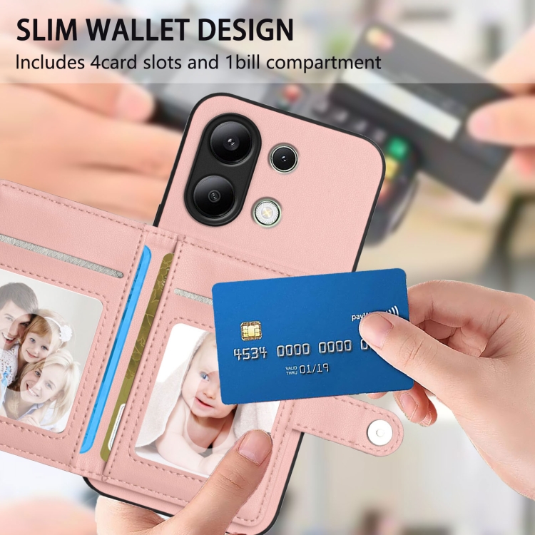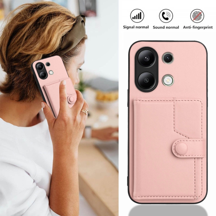 Funda para Teléfono Antirrobo con Botón Rfid y TaRJetero para Redmi Note 13 4G (Rosa)
