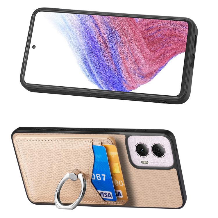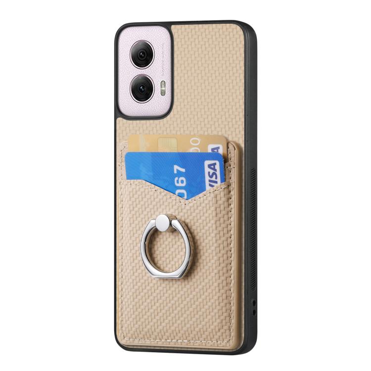 Funda para Teléfono Motorola Moto G Power 5G (2024) con Anillo y Billetera Fibra de Carbono (Caqui)