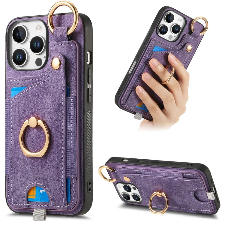 Funda para Teléfono iPhone 16 Pro Max con Anillo Tarjetero Asa Estilo Retro (Morado)