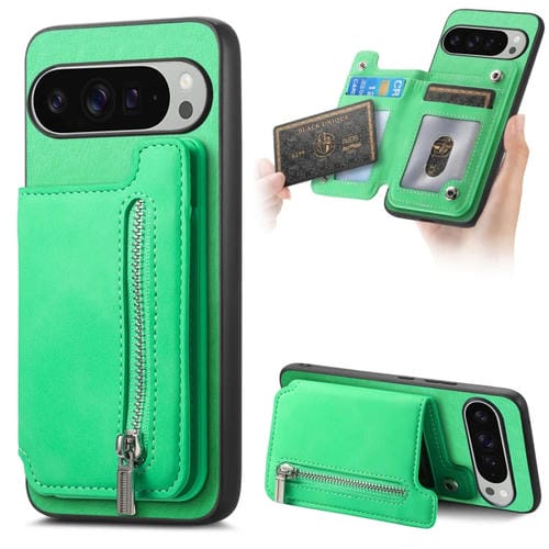 Funda para Teléfono Google Pixel 9 Pro XL con Cremallera Magsafe Tipo Billetera para Tarjetas (Verde)