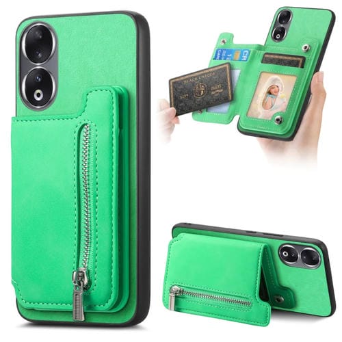 Funda para Teléfono Honor 90 Pro 5G con Cremallera Magsafe, Tarjetero, Cartera (Verde)