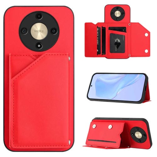Funda para Teléfono Honor X9B Magic6 Lite con 4 Ranuras para Tarjetas y Correa (Rojo)