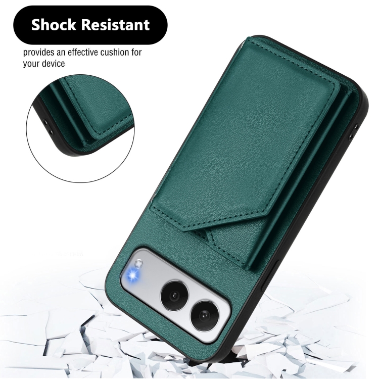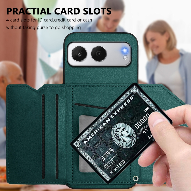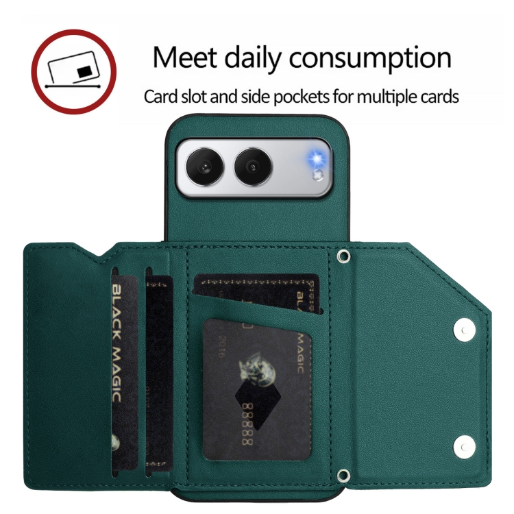 Funda para Teléfono OnePlus Nord 4 con 4 Ranuras para Tarjetas y Correa para Muñeca (Verde)
