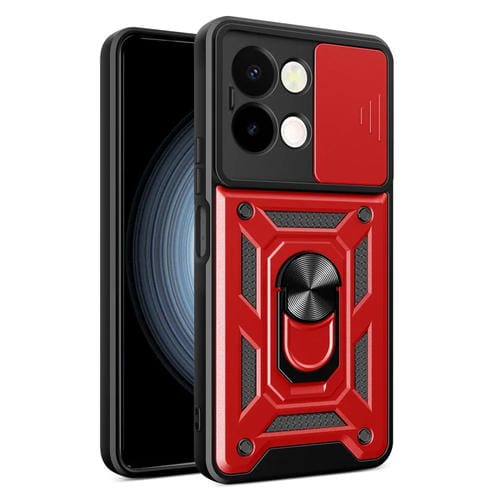 Funda para Teléfono con Diseño de Cámara Deslizante de TPU y PC para Vivo Y28 4G (Roja)