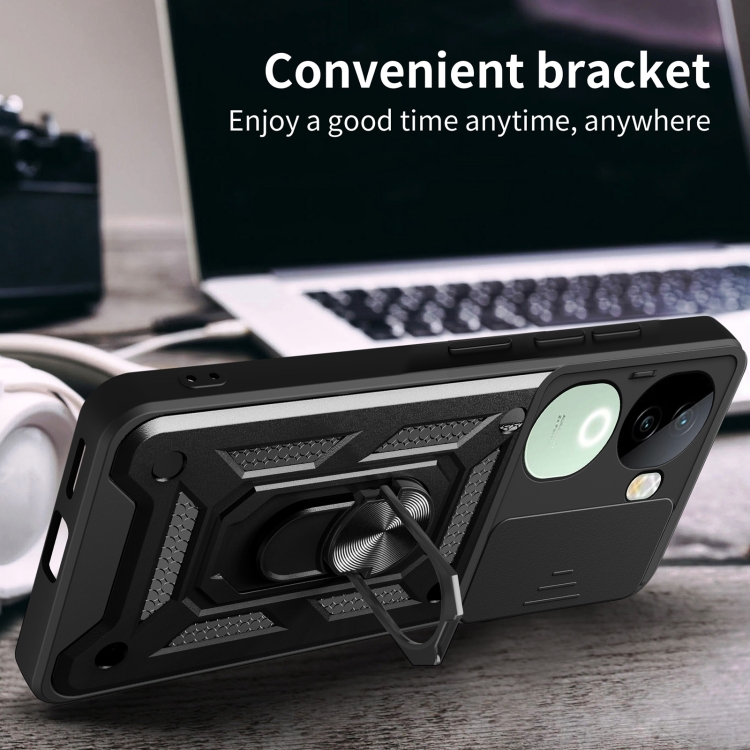 Funda para Teléfono con Diseño de Cubierta Deslizante para Cámara Global para Vivo Iqoo Z9S 5G TPU + PC (Azul)