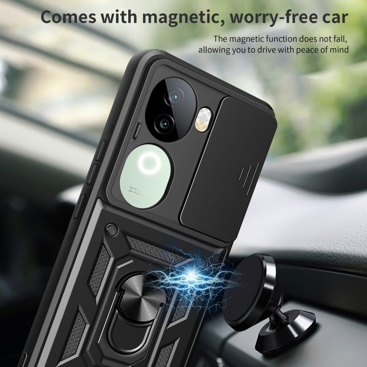 Funda para Teléfono con Diseño de Cubierta Deslizante para Cámara Global para Vivo Iqoo Z9S 5G TPU + PC (Verde)