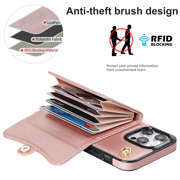 Funda para Teléfono iPhone 16 Pro con Ranura para Tarjeta Rfid y Cordón Largo (Oro Rosa)