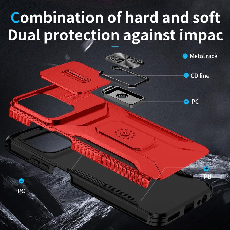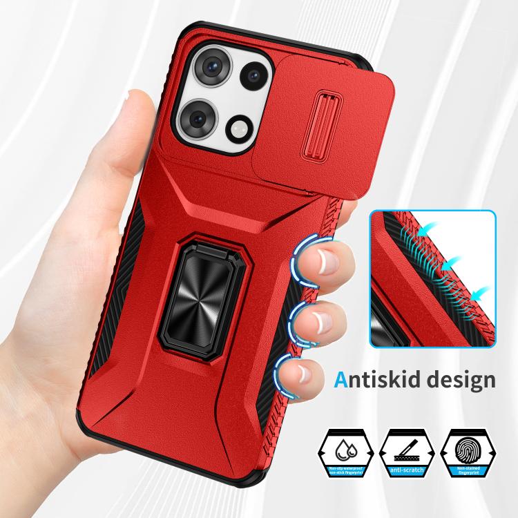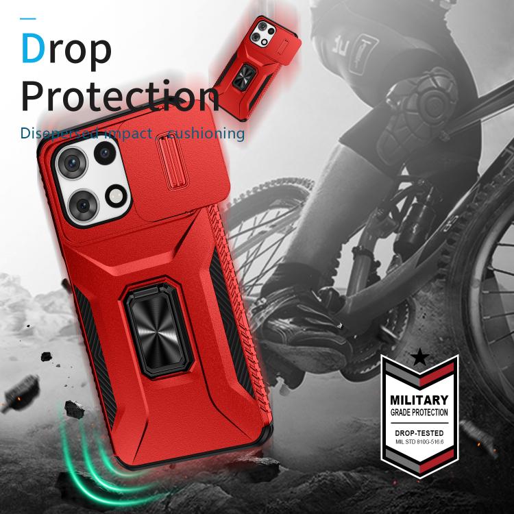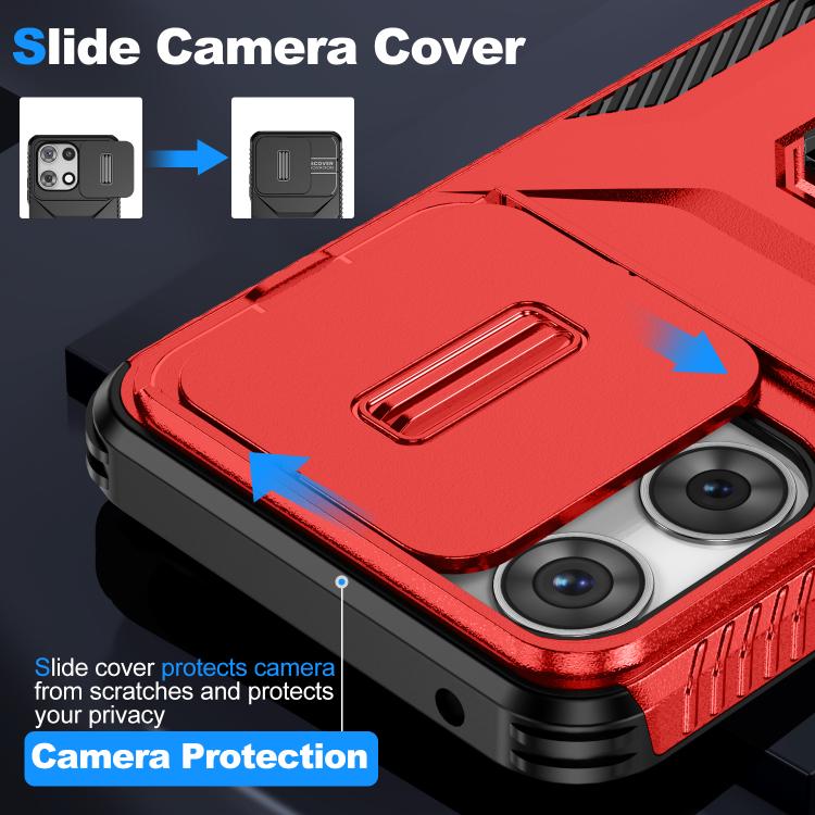 Funda para Teléfono Motorola Moto G 5G 2025 con Soporte Deslizante y Protector de Pantalla (Rojo)