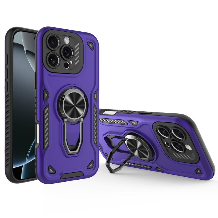 Funda para Teléfono iPhone 16 Pro Max Soporte Giratorio Metal TPU PC (Morado Oscuro)