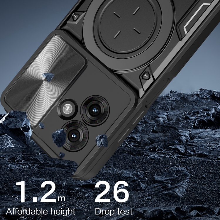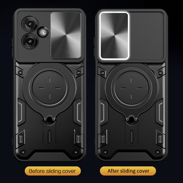 Funda para Teléfono Motorola Moto G55 con Soporte Magnético Deslizante y Textura de Cd (Morado)