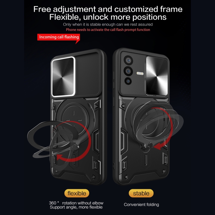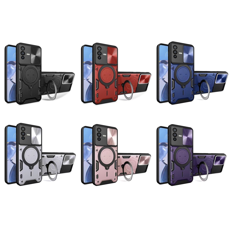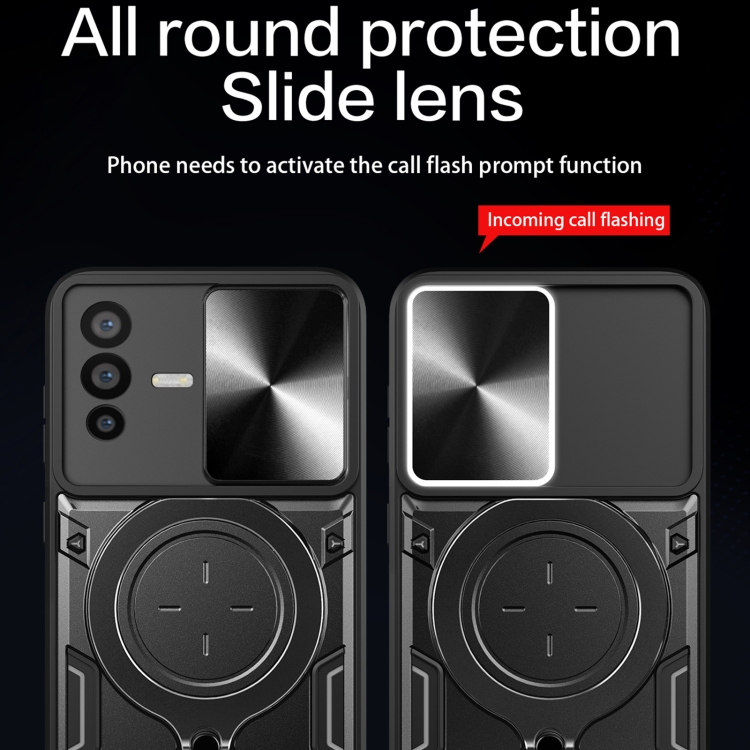 Funda para Teléfono con Soporte Magnético Deslizante con Textura de Cd para Vivo V23 5G/S12 5G (Rojo)