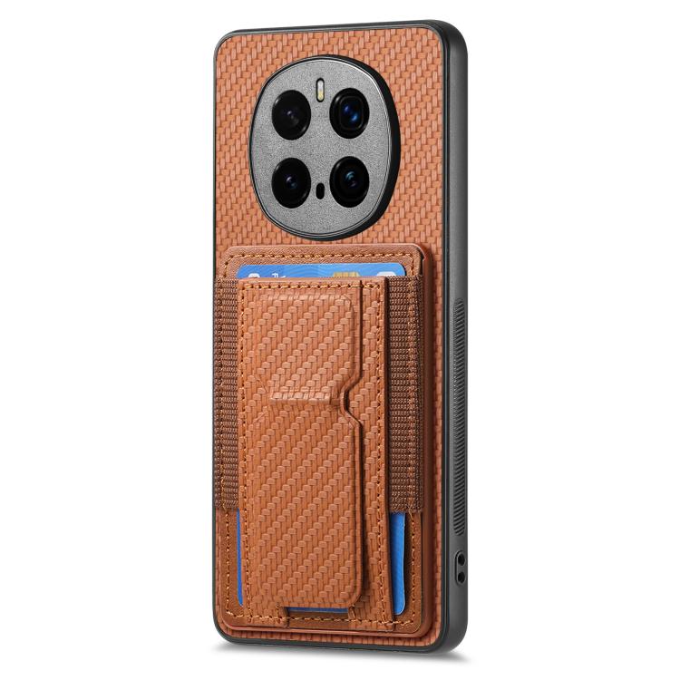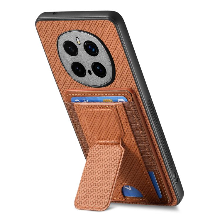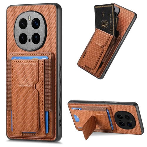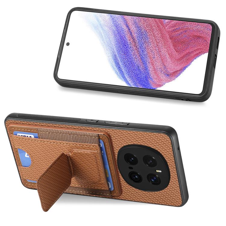 Funda para Honor Magic7 Pro con Soporte Plegable, Fibra de Carbono y Elástica para Tarjetas (Marrón)