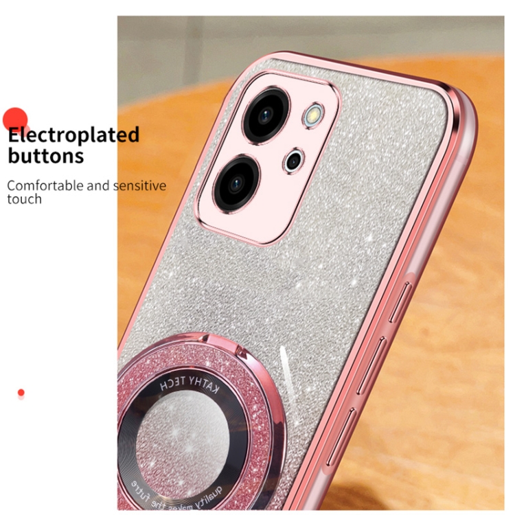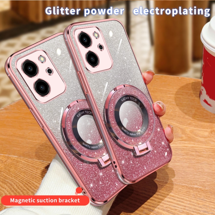 Funda para Teléfono TPU con Soporte Redondo y Purpurina Degradada para Honor 80 Se (Plateada)