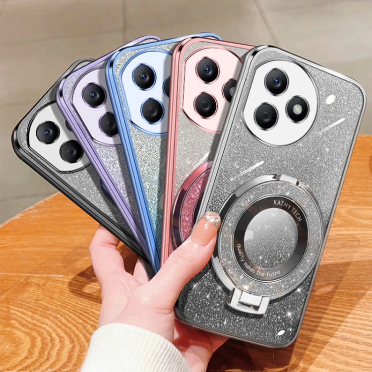Funda para Teléfono Honor X50I+ TPU con Soporte Redondo y Purpurina Degradada (Negro)