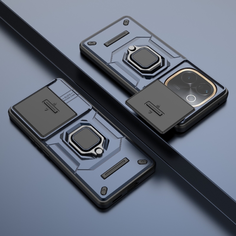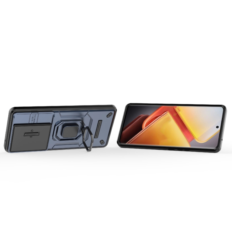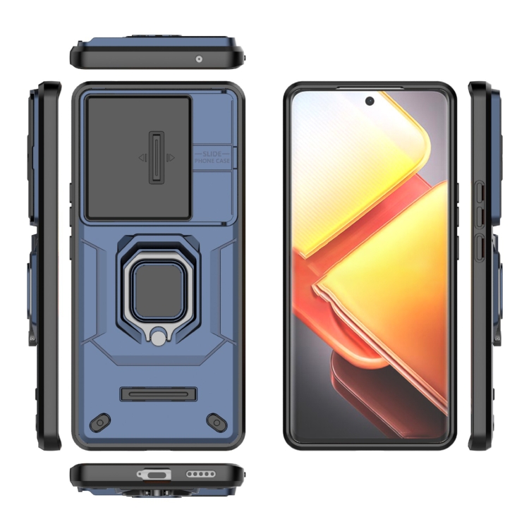 Funda Protectora de TPU + PC con Soporte para Vivo Iqoo Z9S Pro 5G, con Diseño Deslizante y Antigolpes (Azul)