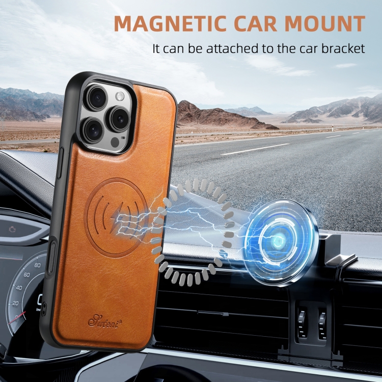 Funda para Teléfono Suteni H15 Magsafe Oil Eax con Tapa de Cuero Desmontable para iPhone 16 Pro (Caqui)