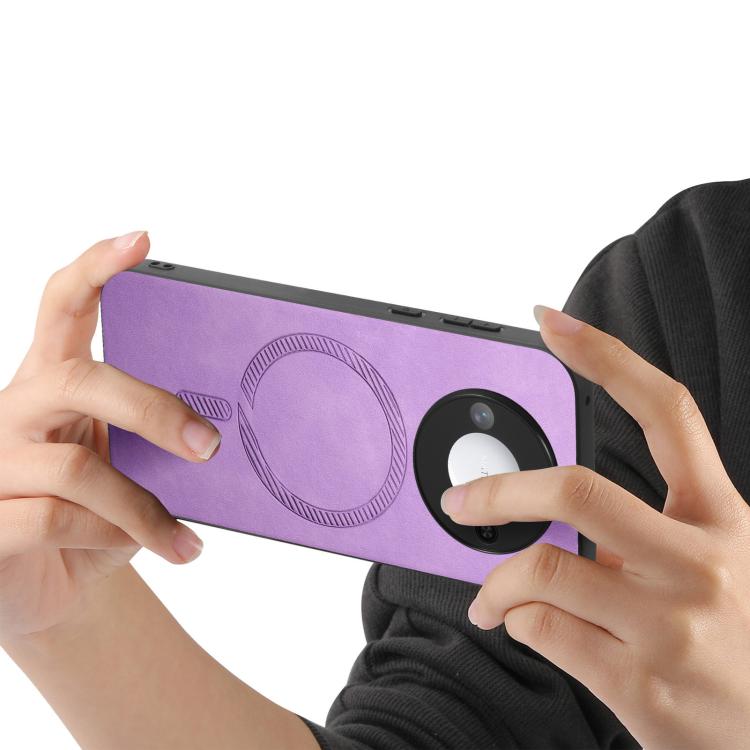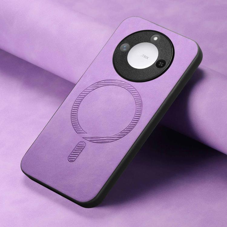 Funda Trasera Magnética de PU para Honor Magic7 Pro Retro Magsafe (Morada)