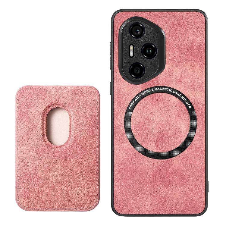 Funda para Teléfono Honor 300 Pro con Tarjetero Cuero Retro y Cierre Magnético (Rosa)