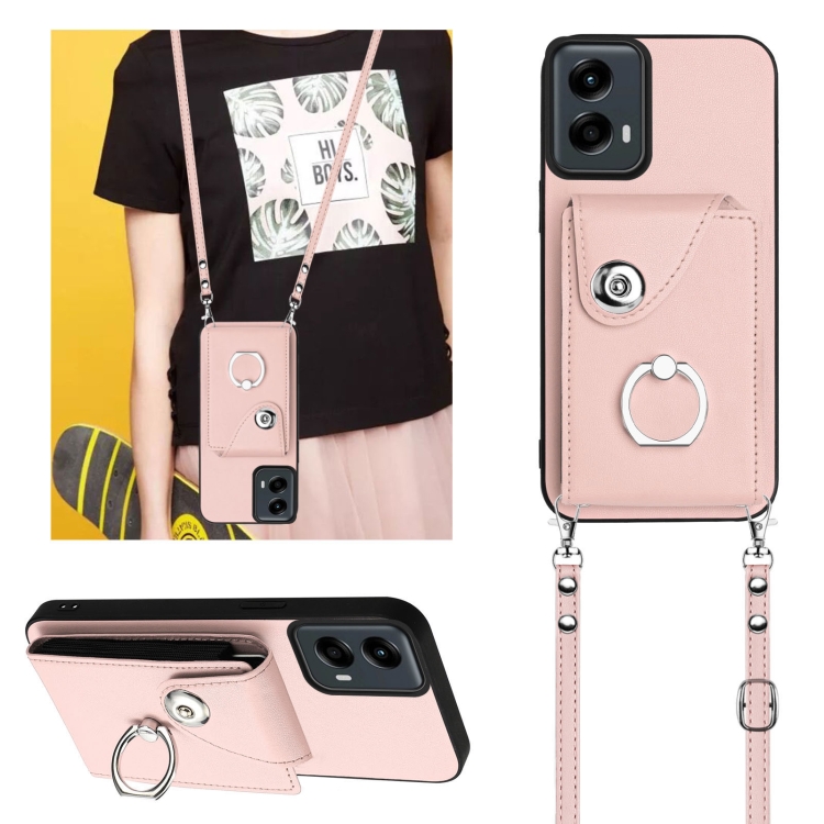 Funda para Teléfono Motorola Moto G 5G (2024) con Tarjetero, Anilla y Cordón Largo (Rosa)