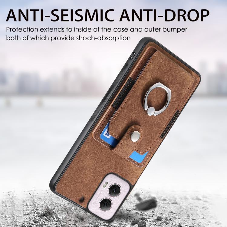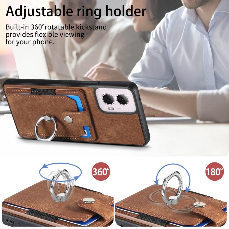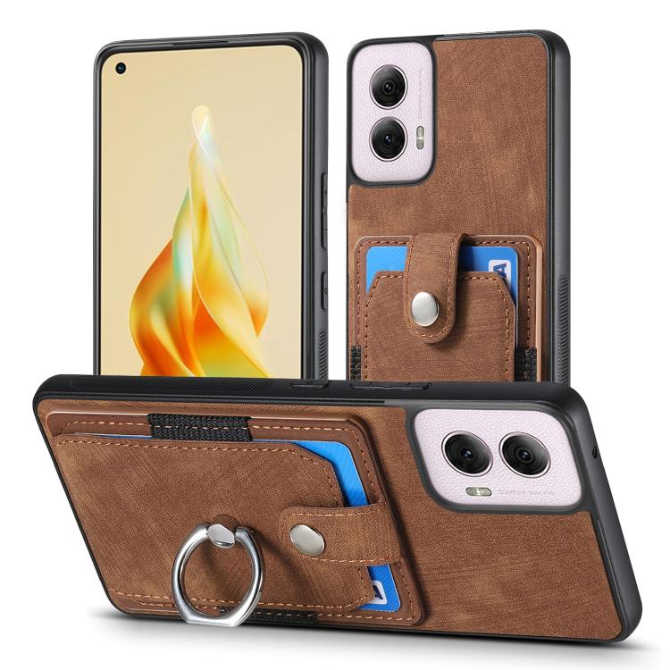 Funda para Teléfono Motorola Moto G Power 2024 5G con Tarjetero y Anillo Tacto de Piel (Marrón)