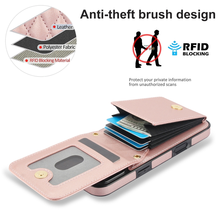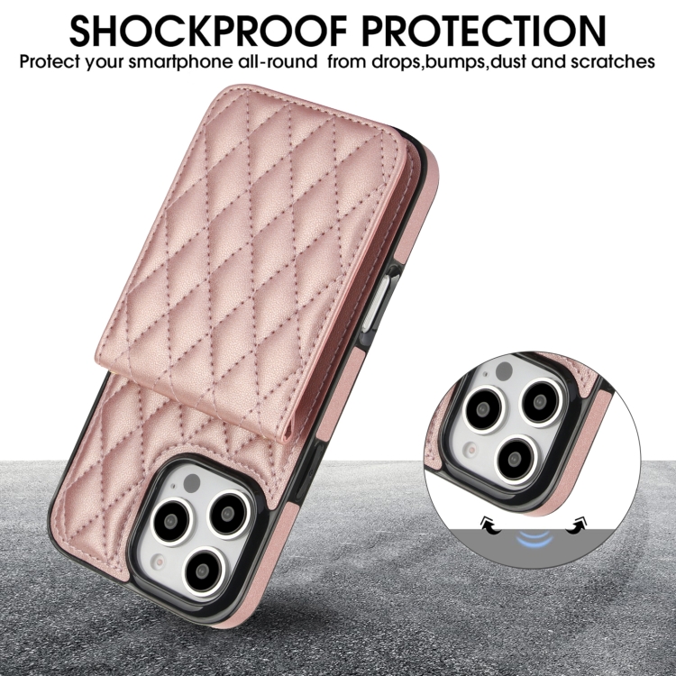 Funda para Teléfono Ym015 con Tarjetero y Diseño de Rombos para iPhone 16 Pro Max (Oro Rosa)