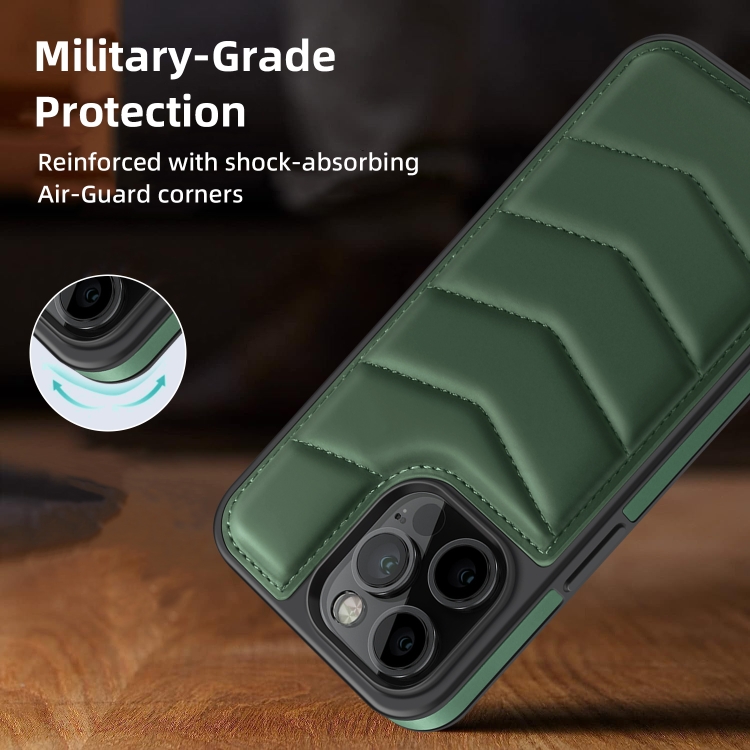 Funda para teléfono iPhone 11 con tarjetero y diseño de chaqueta de plumas y MagSafe (Verde Oscuro)