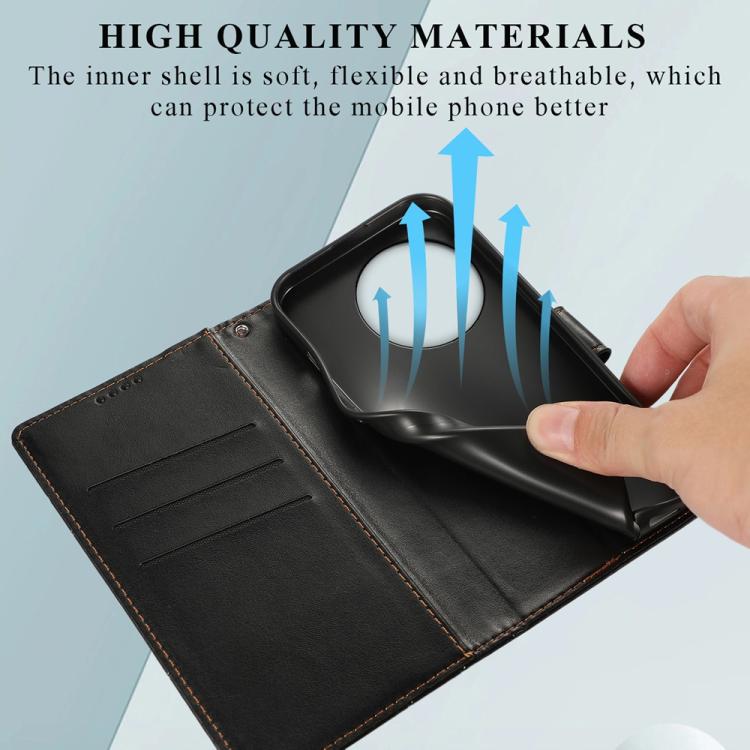 Funda para Teléfono OnePlus 13R Ace 5 Ace 5 Pro Cuero Genuino PU Líneas En Relieve (Negro)