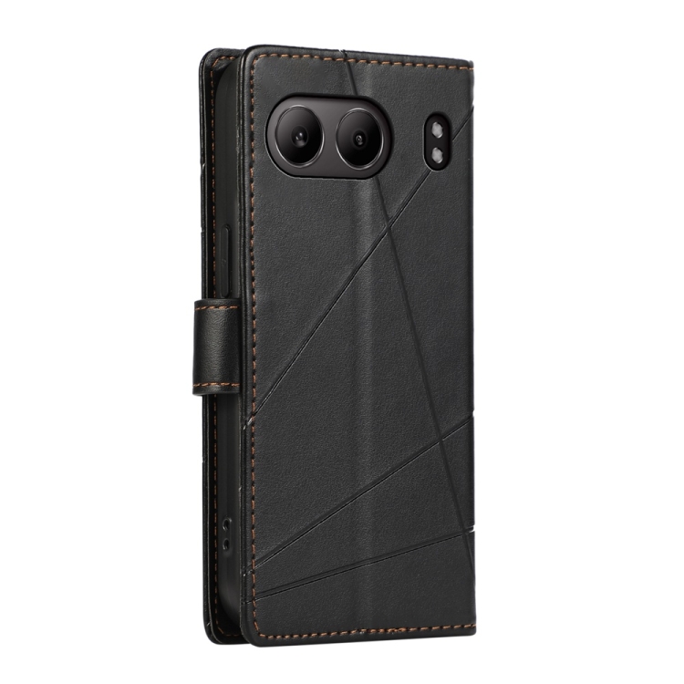 Funda para Teléfono OnePlus Nord 4 con Textura de Cuero Genuino PU y Líneas en Relieve (Negro)