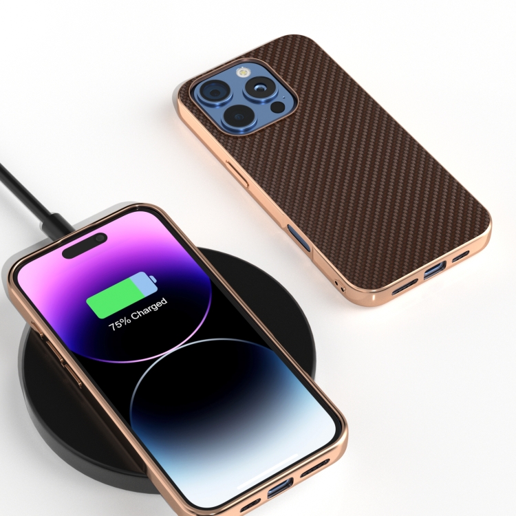 Funda para teléfono Apple iPhone 16 Pro textura fibra de carbono nano galvanoplastia (Marrón Oscuro)