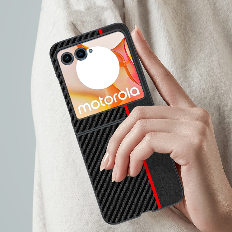 Funda para Teléfono Motorola Razr 50 con Textura Fibra de Carbono Ultrafina (Negro y Rojo)