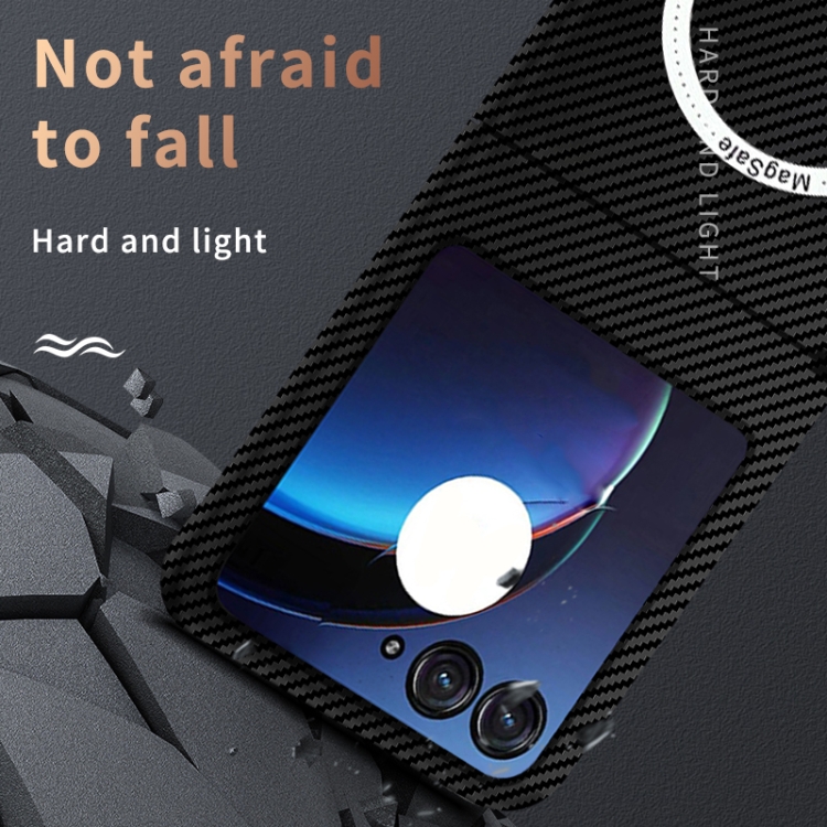 Funda para Motorola Razr 50 con Textura Fibra de Carbono y Cierre Magnético Magsafe (Negro y Plateado)