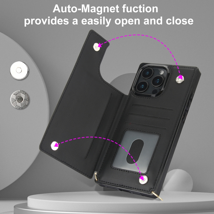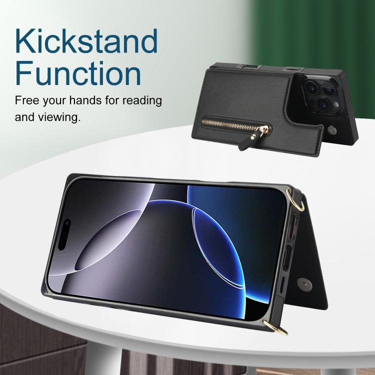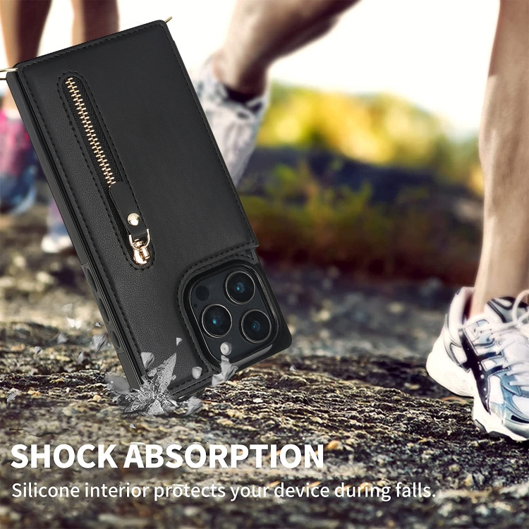 Funda para Teléfono Cuadrada con Cremallera y Diseño Cruzado para iPhone 16 Pro Max (Negra)