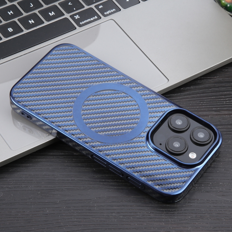 Funda para Teléfono PC con Protección Magsafe Fibra de Carbono Chapada 6D para iPhone 16 Pro Max (Azul Sueño)