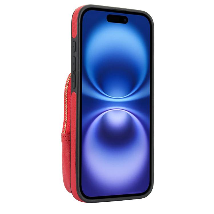 Funda para Teléfono Awquer iPhone 16 Plus Piel de Lichi Cremallera Cartera Cruzada (Rojo)