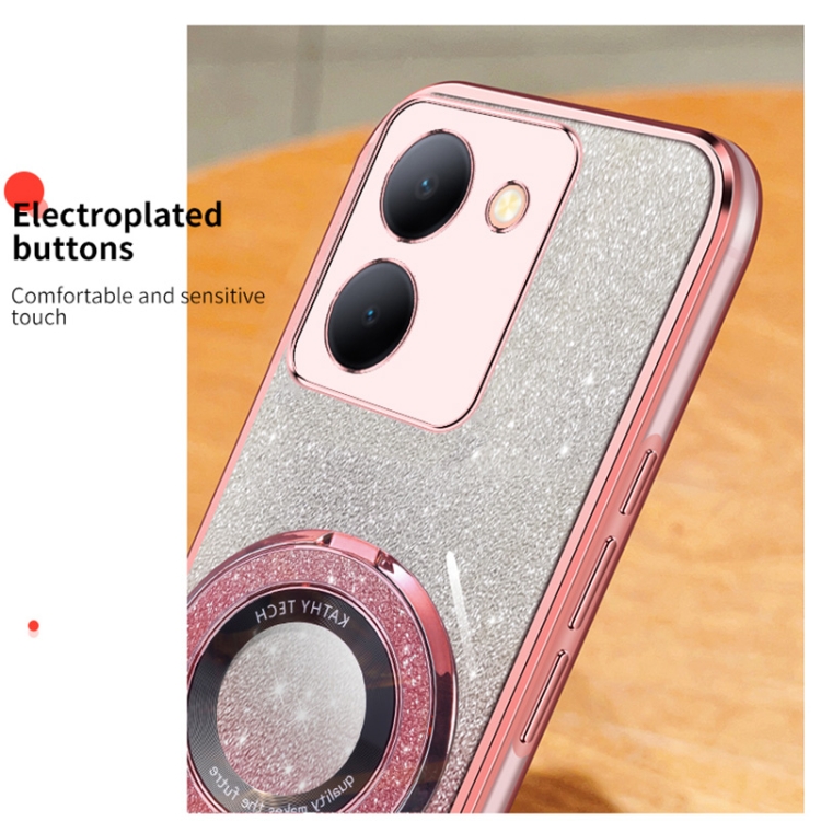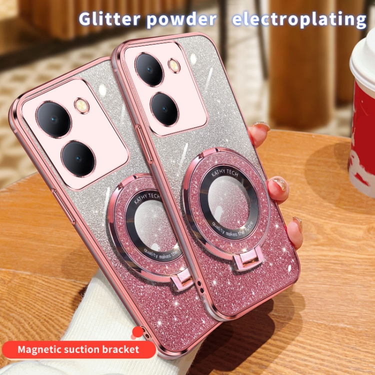 Funda para Teléfono de TPU con Soporte Redondo y Purpurina Degradada Chapada para Vivo Y78/Y36 5G (Negra)