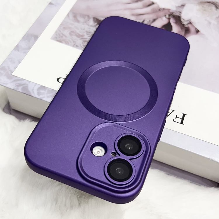 Funda para teléfono TPU Magsafe iPhone 16 Plus Textura Cd Pintura Metalizada (Morado Oscuro)