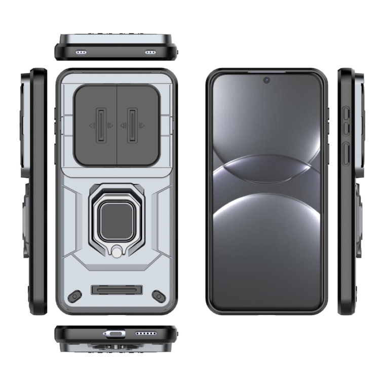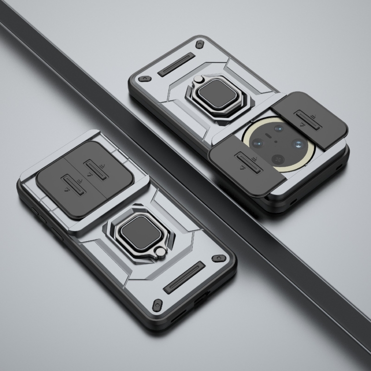 Funda para Teléfono Huawei Mate 70 Pro 5G y 70 Pro+ 5G con Soporte y Cierre Deslizante TPU + PC (Gris)