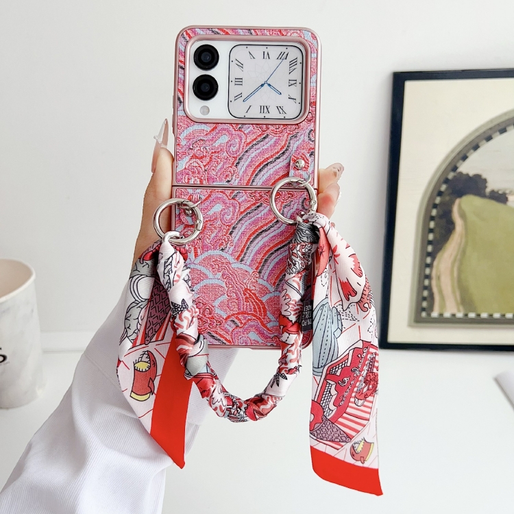Funda para Teléfono Huawei Nova Flip Bordado Nubes Cobertura Total con Bufanda y Pulsera (Rojo)