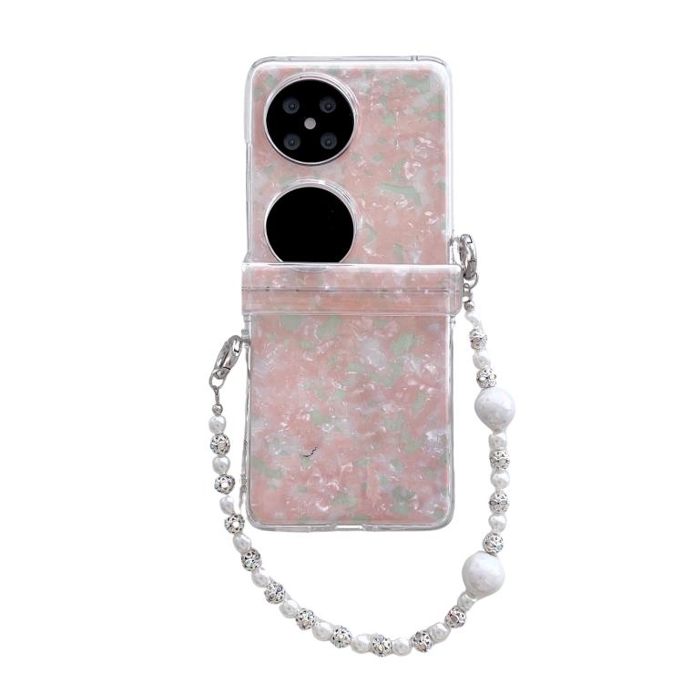 Funda para Teléfono Huawei Pocket 2 con Textura Perlada, Tres Piezas y Pulsera (Rosa y Verde)