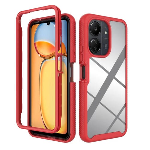 Funda para Teléfono Redmi 13C 5G/4G Starry Sky de Color Sólido a Prueba de Golpes de TPU Transparente para PC (Rojo)