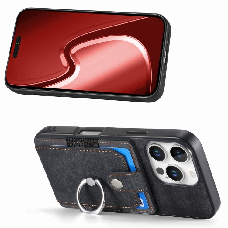 Funda para Teléfono Tipo Billetera con Anillo y Tarjetero para iPhone 16 Pro (Negra)