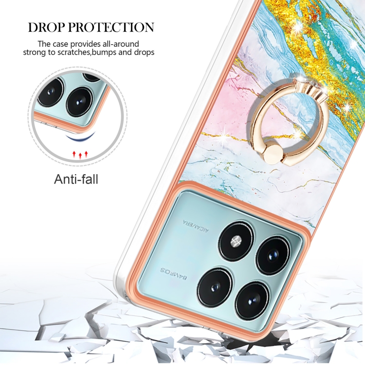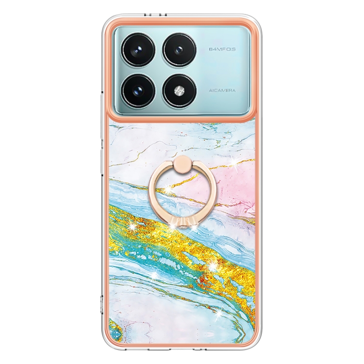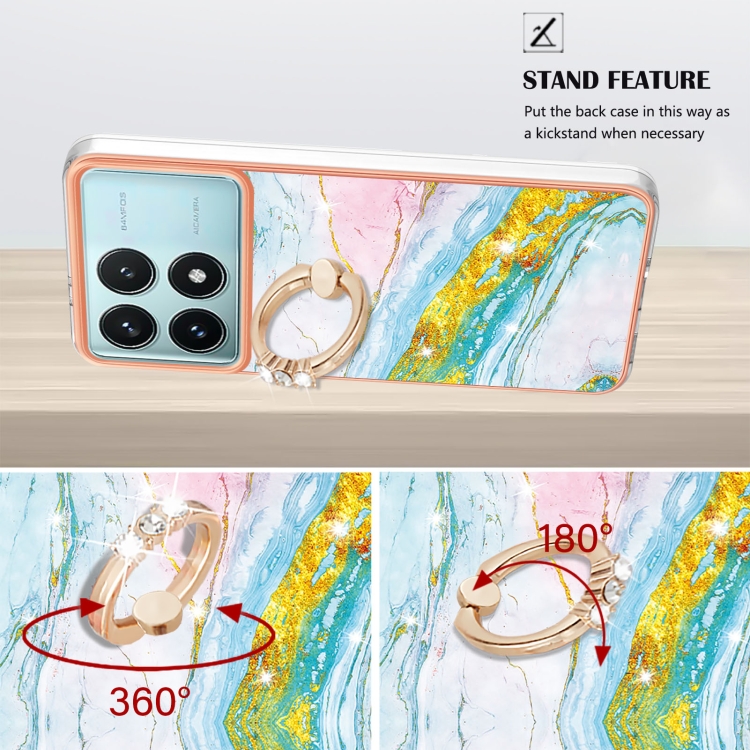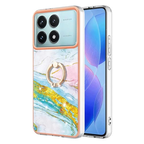 Funda para Teléfono Xiaomi Poco F6 Pro 5G con Galvanoplastia de Mármol Imd TPU y Soporte para Anillo (Verde 004)