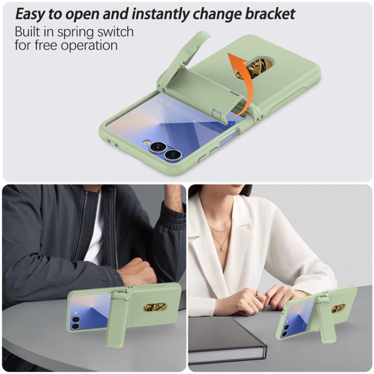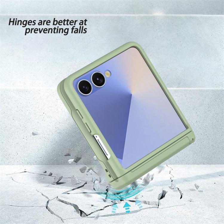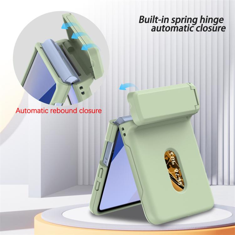Funda plegable de PC con soporte y ranura para tarjeta y cadena de goma para Samsung Galaxy Z Flip7 5G (verde claro)