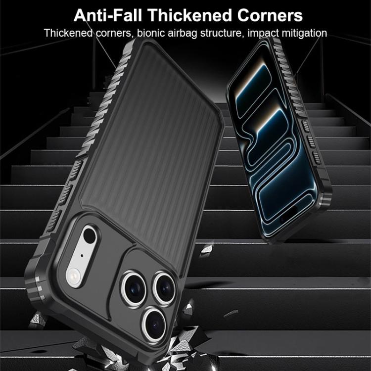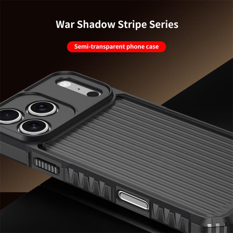 Funda protectora antigolpes War Shadow Stripe Series con airbag y acabado esmerilado para iPhone 17 Pro (Negro)