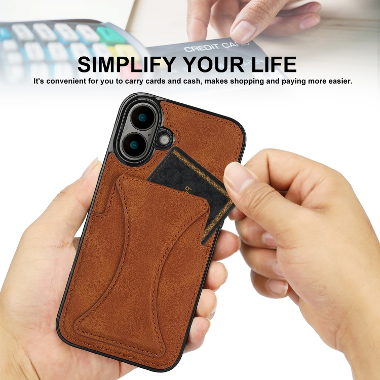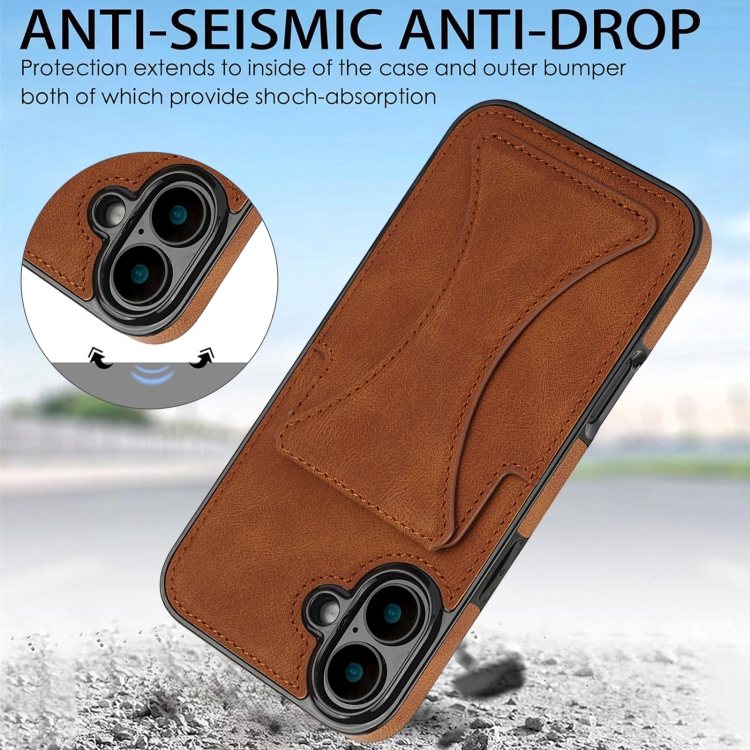 Funda Protectora Ultrafina para iPhone 16 con Soporte a Prueba de Golpes (Marrón)