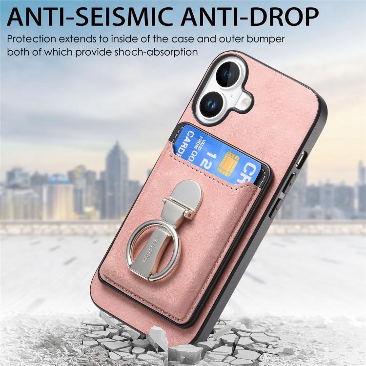 Funda retro plegable con anillo y tarjetero para iPhone 17, MagSafe (rosa)